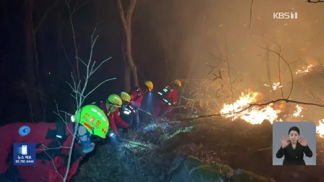 현장에서는 매캐한 연기와 함께 나무가 타는 소리가 계속 들리고 있으며, 소방대원과 산림청 관계자들이 밤새 진화 작업을 이어가고 있습니다.